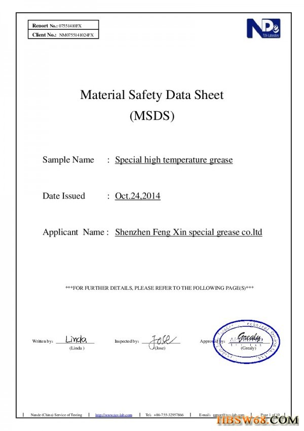 MSDS认证书